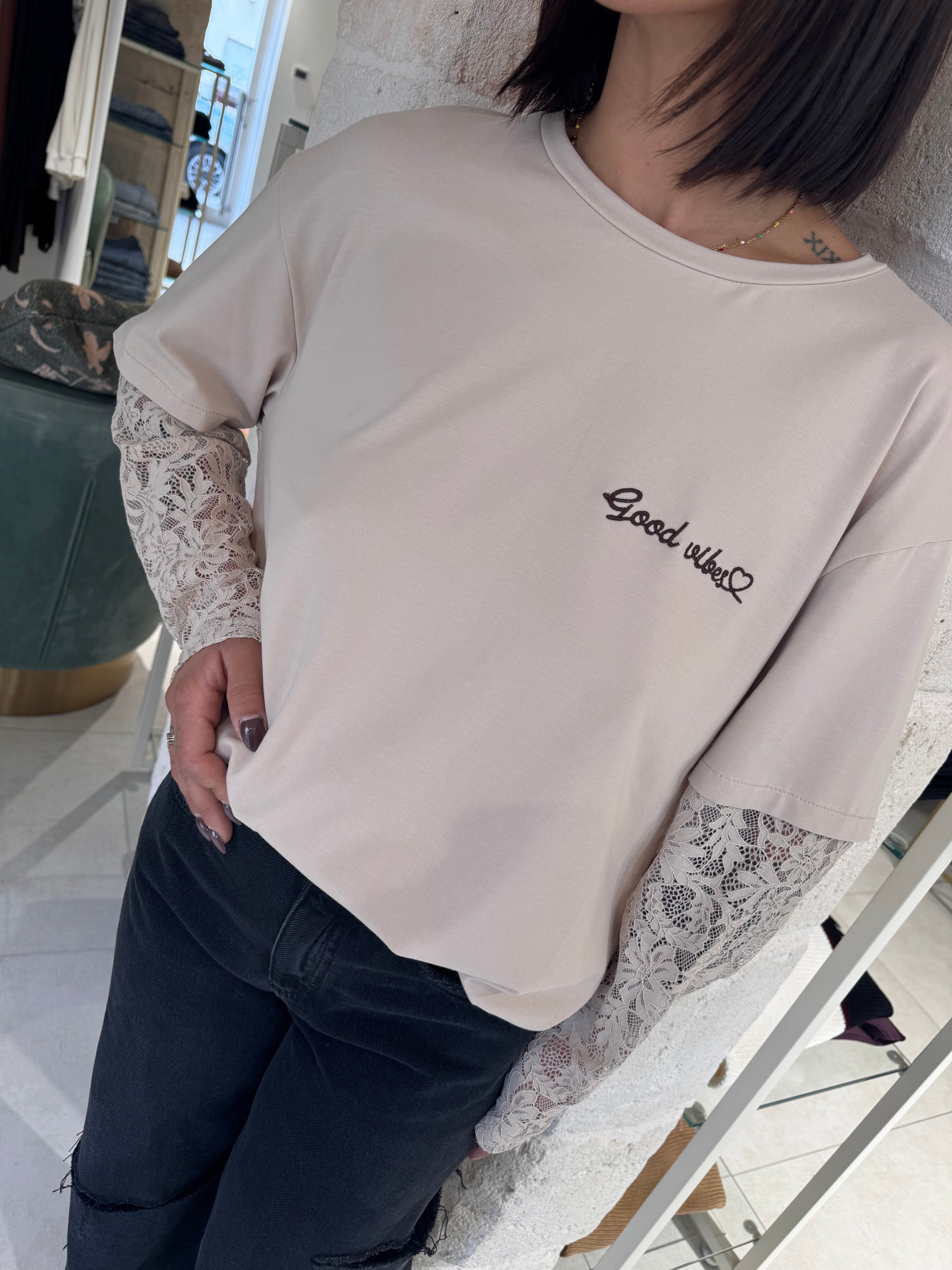 Maglia in cotone con scritta Good Vibes